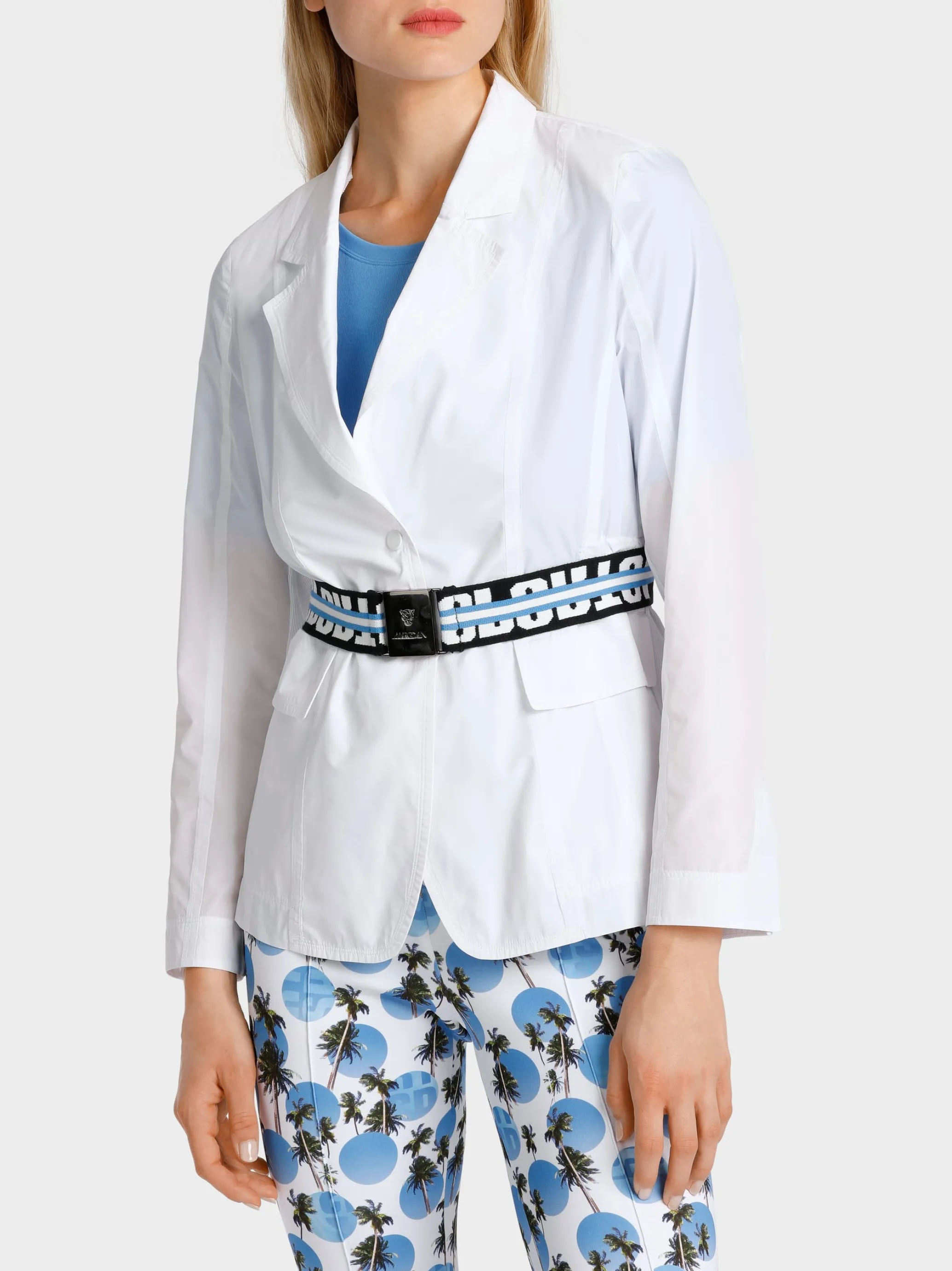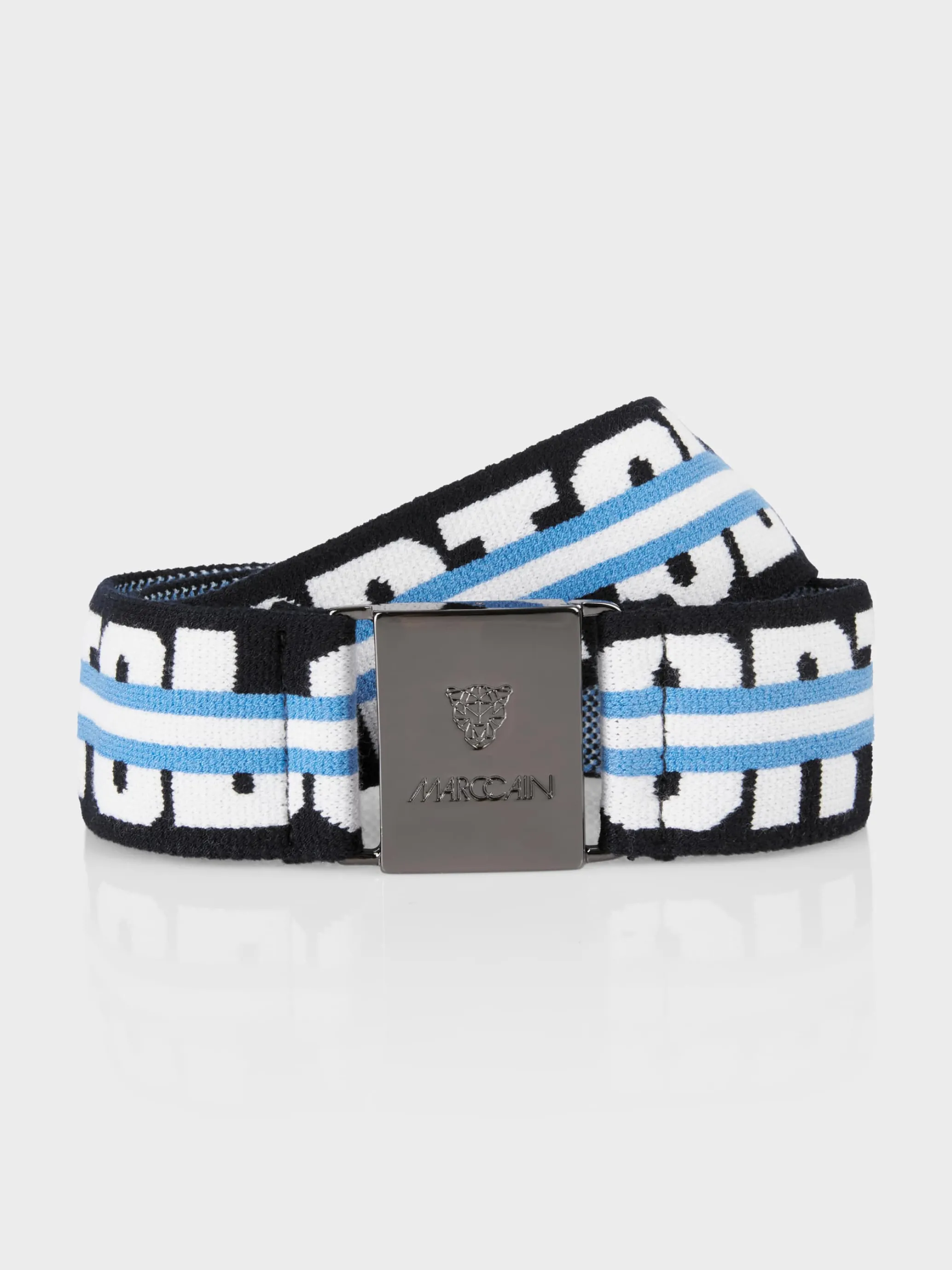Taillengürtel mit Streifen – Sportiv präsentiert sich dieser Taillengürtel mit seinen farbenfrohen Streifen. Blickfang ist auch der Marc Cain Sports Schriftzug. Der Gürtel kommt im soften, leicht stre